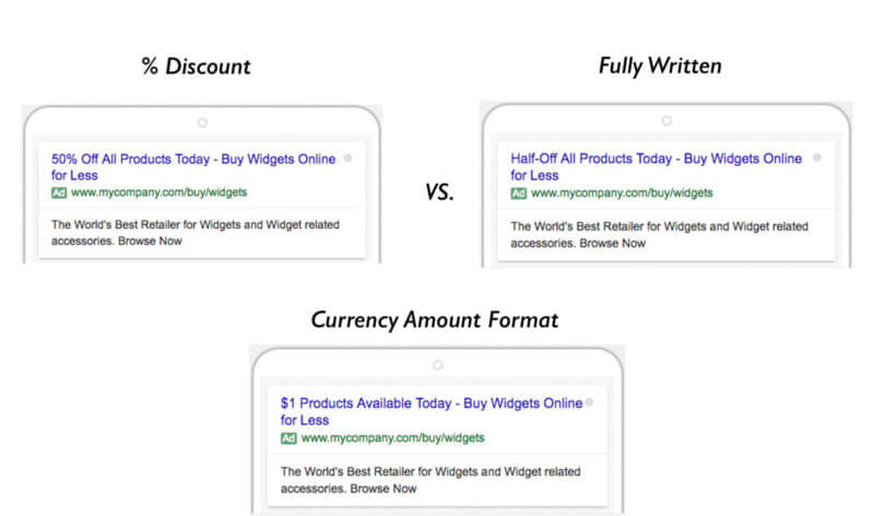 The key element of an optimized advertising campaign is to know the response of customers on your promotional efforts. By making little adjustments in promotional language, your ad can reach the clients and drive drastic changes in click through rates. However, promotional types or wording may vary from industry to industry, here are some ways to advertise perfectly during the same promotion. Focus on headline 1